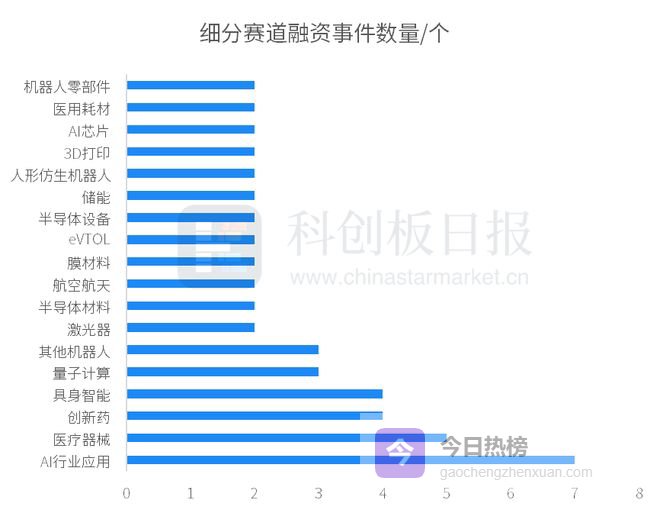 在细分赛道上,本周较受投资人追捧的有AI行业应用、医疗器械、创新药、具身智能、量子计算、其他机器人等。其中,AI行业应用有7家公司获投,活跃度居前。