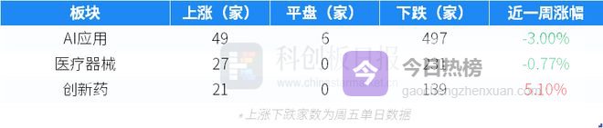 作为对比,本周AI应用、医疗器械、创新药二级市场表现如下表所示。
