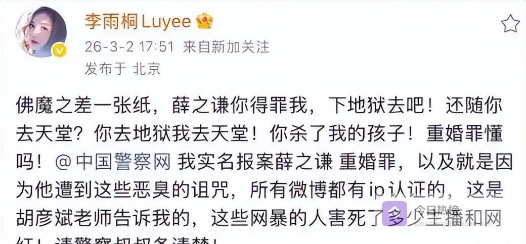李雨桐在社交平台上直言不讳,实名指控薛之谦涉嫌重婚,还说自己在感情里遭受了很大伤害,甚至还因此流产了。