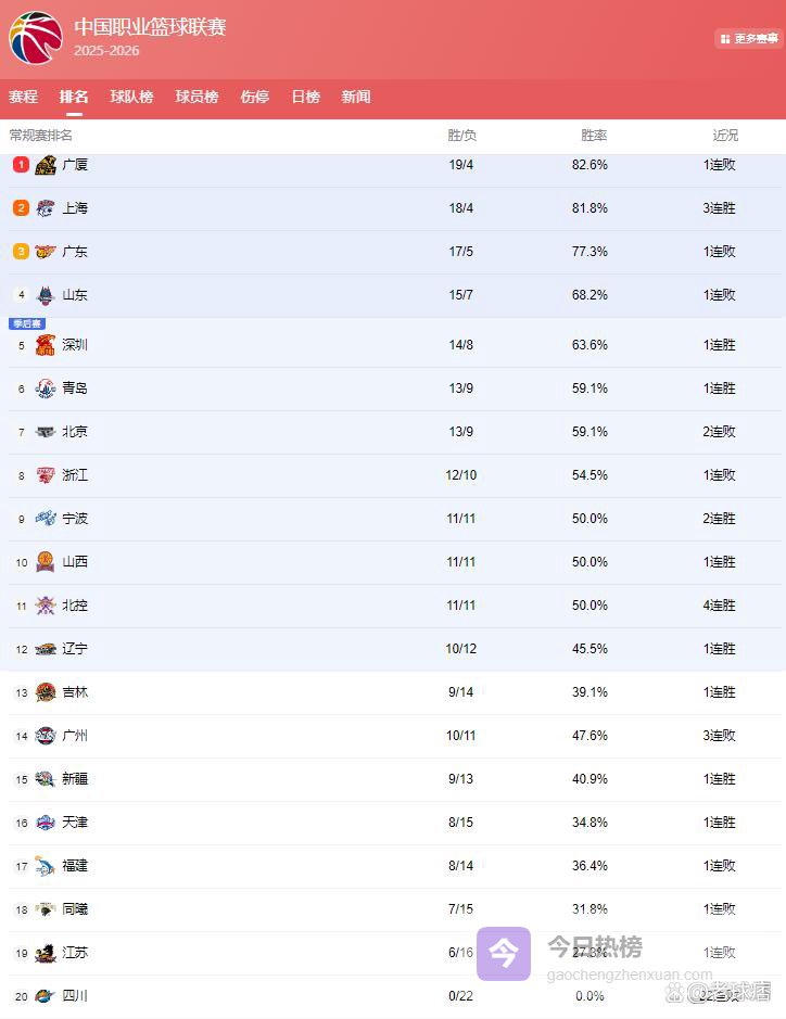 广厦输球,上海冲第1!