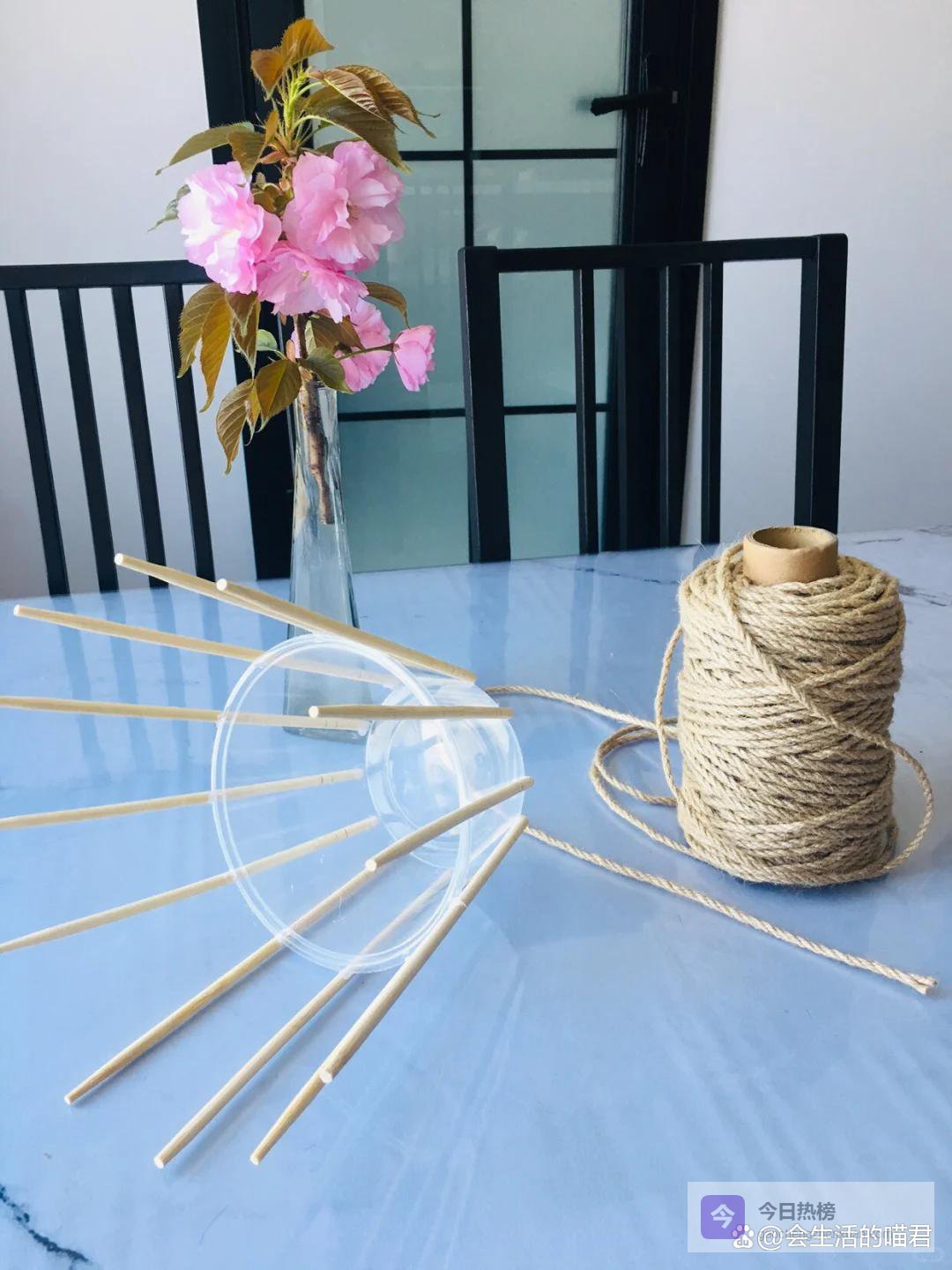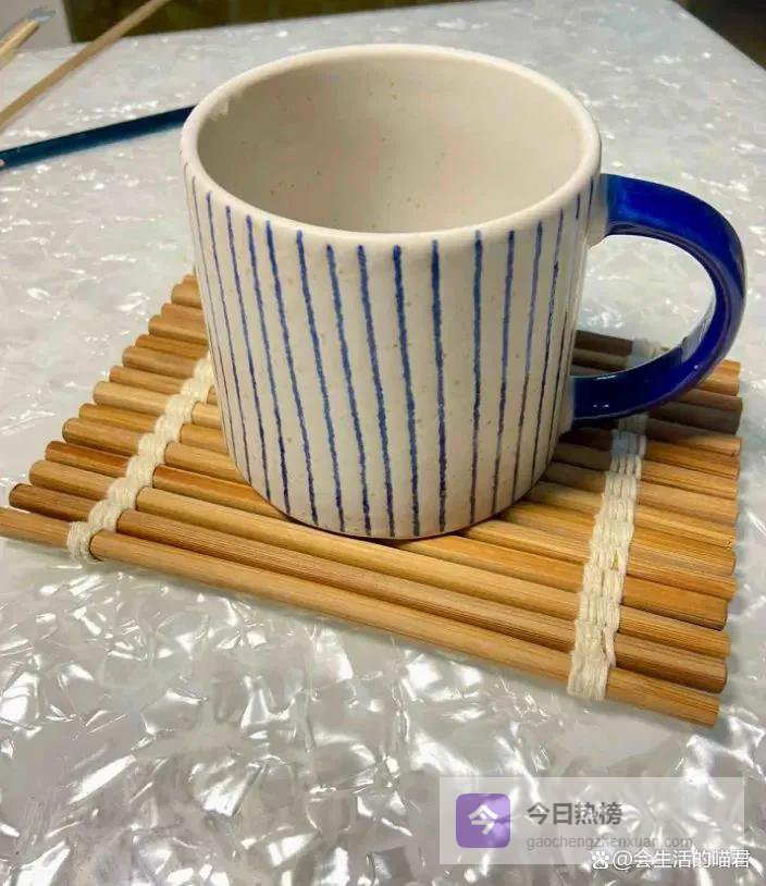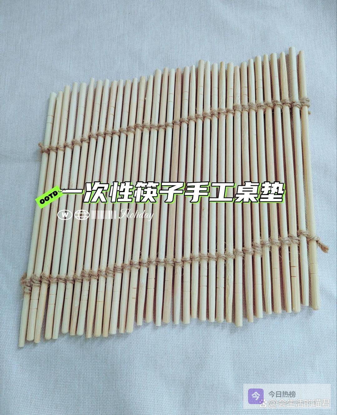 把家里鸡蛋的一次性筷子制作一个隔热垫,又好看又实用,可以使用麻绳,也可以使用蛋糕丝带,如果都没有,家里不要的鞋子,