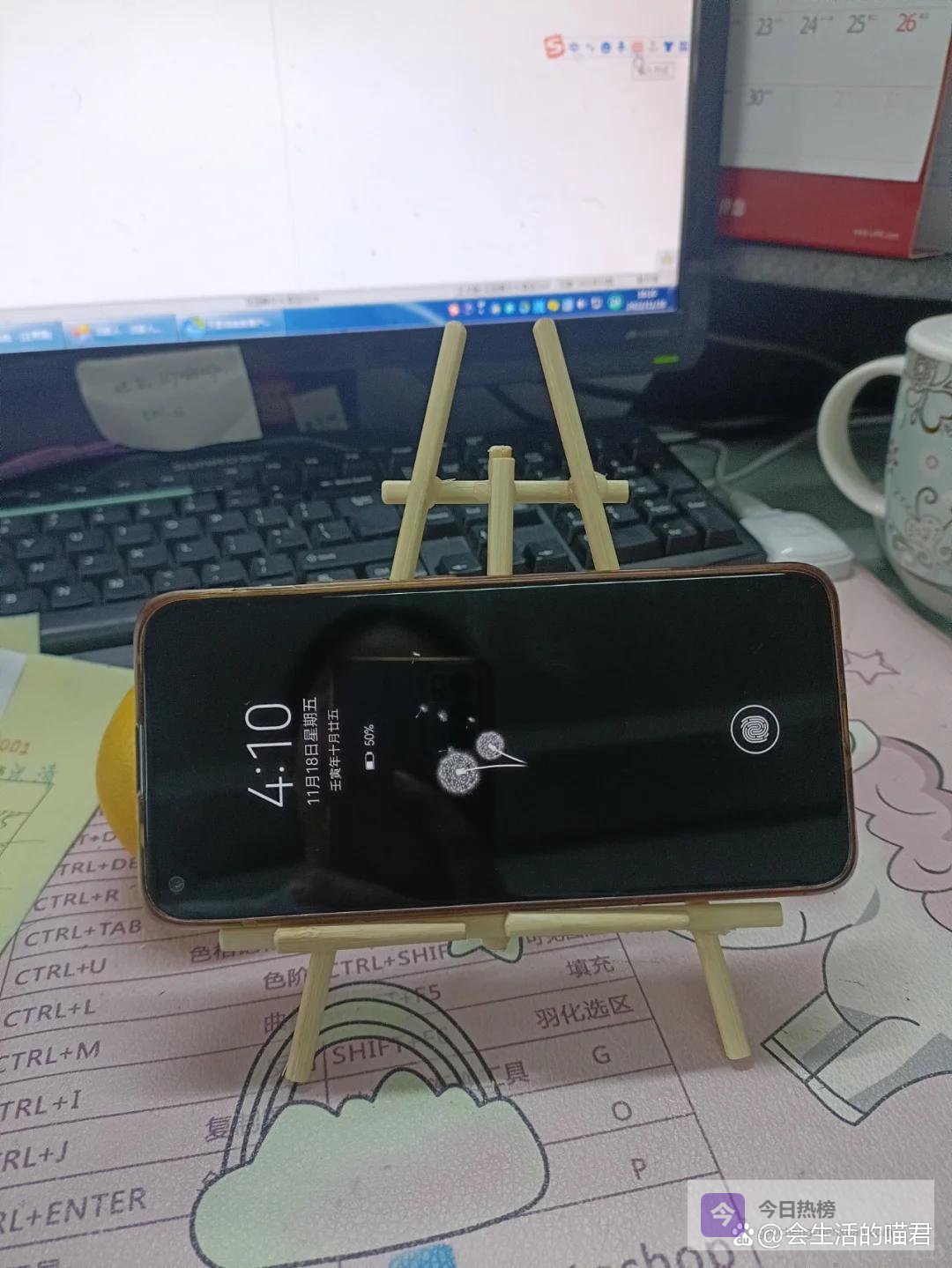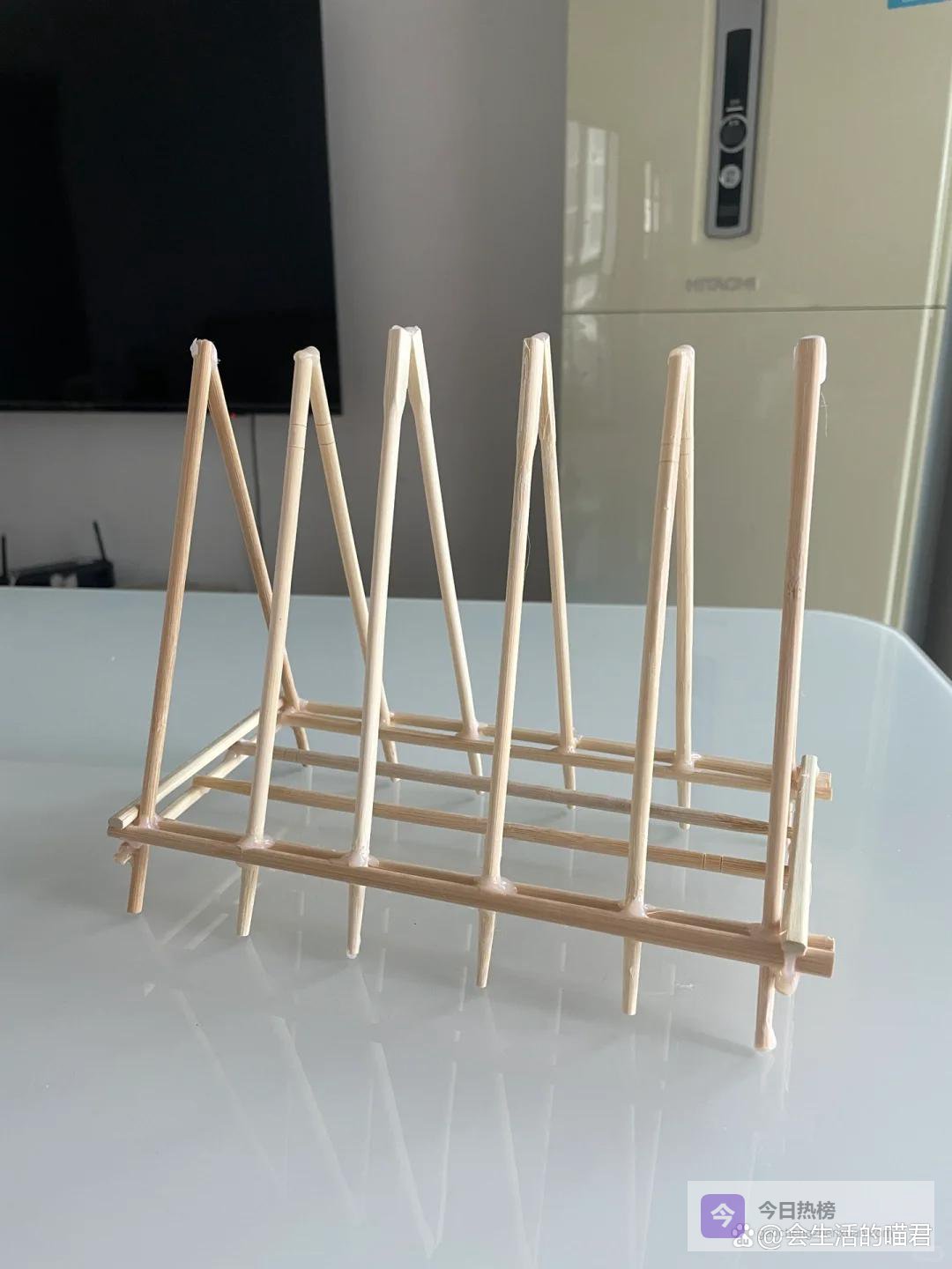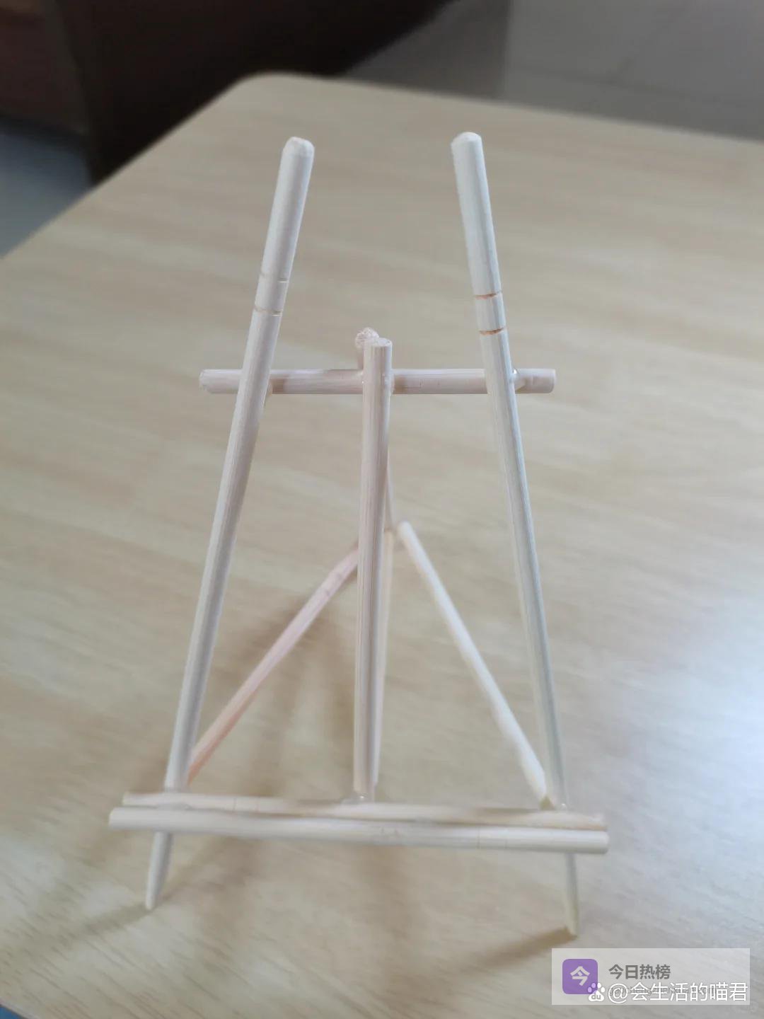 一次性筷子可以制作一个简单的手机支架,像图中这样的方式,将一次性筷子用热熔胶固定住,然后手机平板就可以放在上面了,非常稳固,追剧可以彻底解放双手。