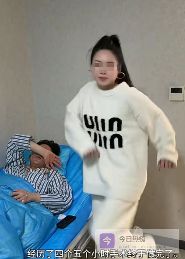她在病床旁边扭腰摆胯,来了一段社会摇,还拍成视频发到了网上,配上文字说自己激动,以后天天就能看见"平替张凌赫"了。