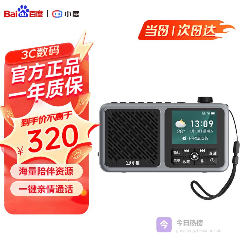 【商品推荐】2:小度智能收音机老年版它把“适老化”从口号变成可触摸的细节:屏幕字体可三级无级放大,语音指令支持方言模糊识别,比如老人说“来点京剧”,系统能自动过滤杂音、匹配央广文艺频率,而不是卡在“未识别”。温度、日期、天气图标全用象形符号呈现,连“星期五”都配了日历小图标,视觉理解零门槛。