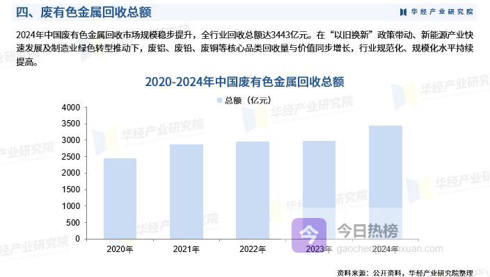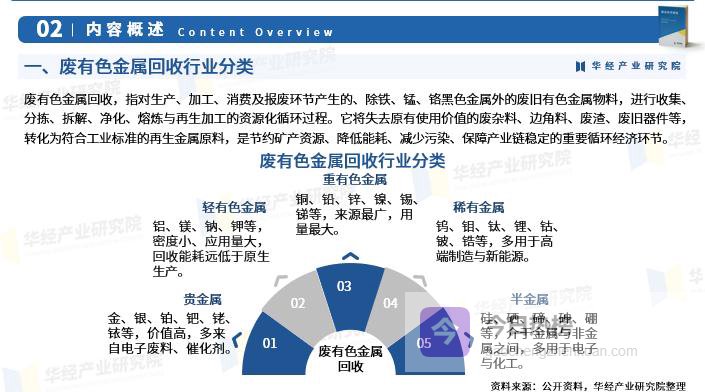 华经产业研究院为助力企业、科研、投资机构等单位了解废有色金属回收行业发展态势及未来趋势,特重磅推出《2026-2032年中国废有色金属回收行业市场深度评估及投资方向研究报告》,本报告由华经产业研究院研究团队对废有色金属回收行业进行多年跟踪研究,使用桌面研究与定量调查、定性分析相结合的方式,全面解读废有色金属回收行业市场,深度挖掘行业潜在商机;科学运用研究模型,多维度对行业投资风险进行评估后精心研究编制。