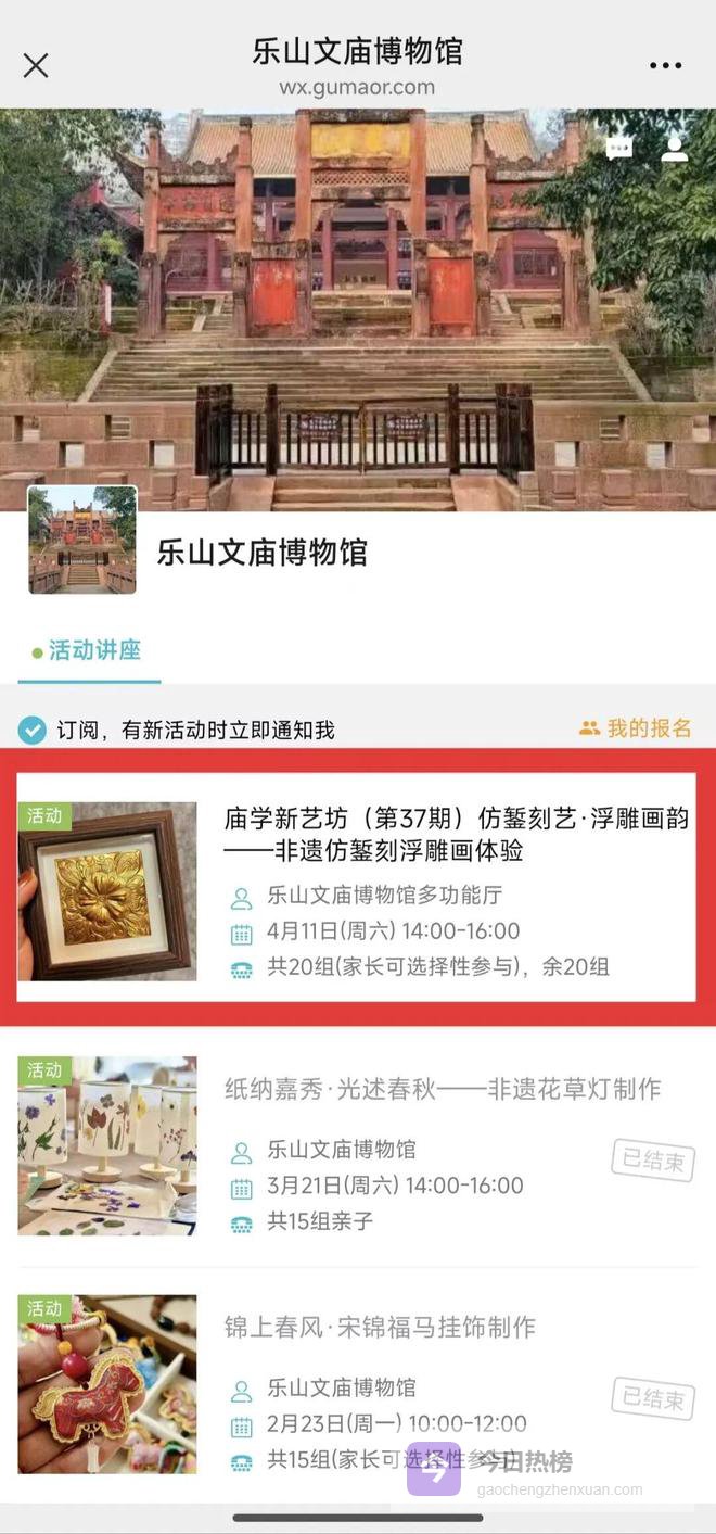 1.本活动为乐山文庙博物馆公益活动,符合报名年龄者均可免费参加。