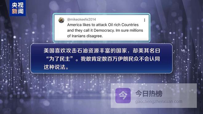 “美国喜欢攻击石油资源丰富的国家,却美其名曰‘为了民主’。我敢肯定数百万伊朗民众不会认同这种说法。”