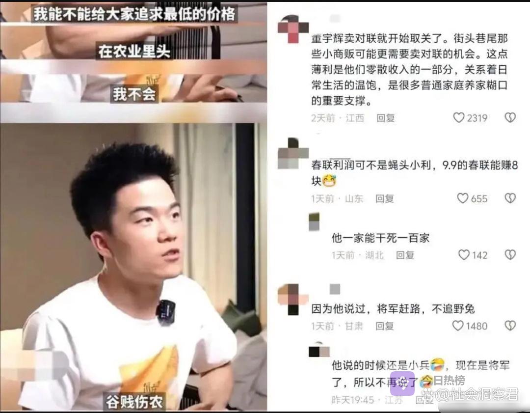 有网友觉得不舒服,认为这是“强者与民争利”,缺少社会责任感。更让人吐槽的是,这和董宇辉之前立的人设反差也太大了。