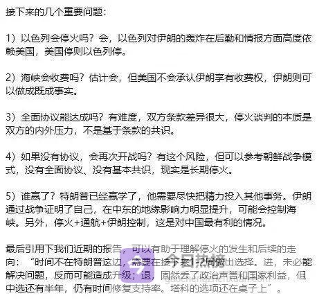 因为美伊停火谈判刚达成,两周窗口期。