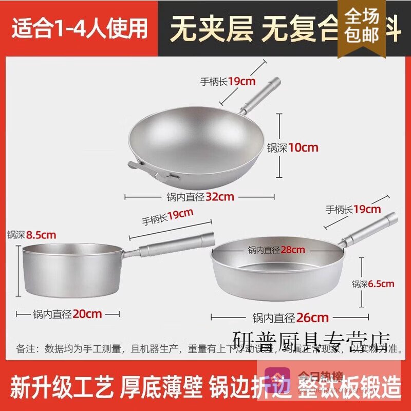 OUOETY德国进口超轻纯钛炒锅无涂层不粘锅家用炒菜锅一体燃气灶专用炒锅 2.0mm纯钛锅有耳+纯钛¥