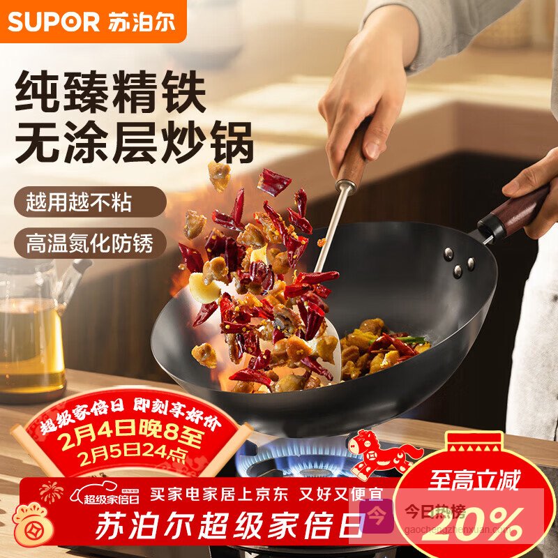 苏泊尔(SUPOR)精铁炒锅健康无涂层铁锅32cm明火燃气炒菜锅¥