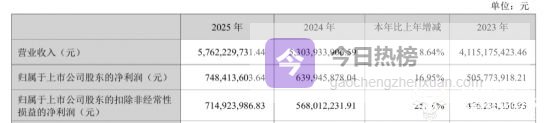财报数据显示,盐津铺子2025年全年实现营业收入57.62亿元,同比增长8.64%,归母净利润为7.48亿元,同比增长16.95%,营收和利润均有所增长。
