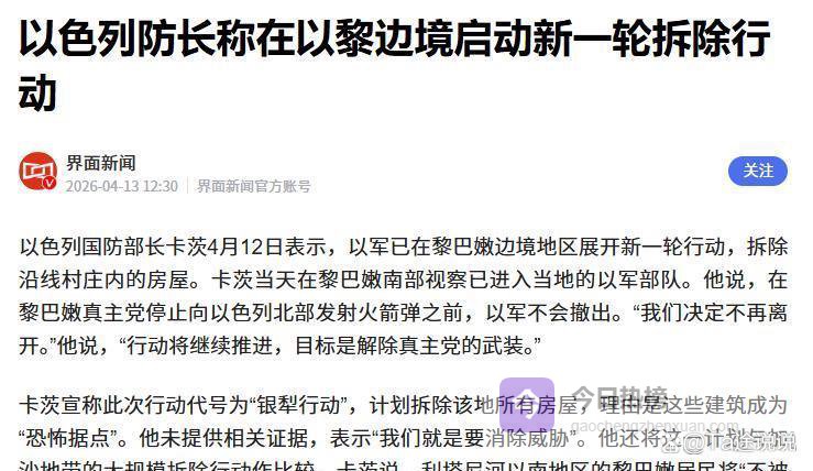 前一天防长卡茨就放了狠话,行动叫“银犁行动”,要拆光边境沿线所有房屋,理由就一句“这些是恐怖据点”。