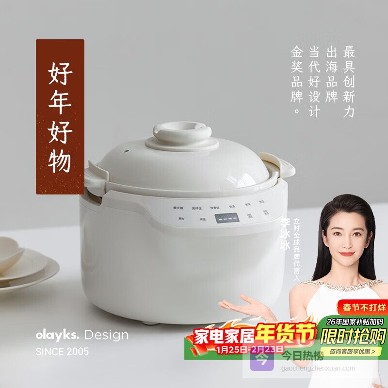olayks立时 陶瓷内胆电饭煲2-5人真土锅0涂层电饭锅家用智能柴火饭煲仔饭煲汤防溢无涂层3L¥