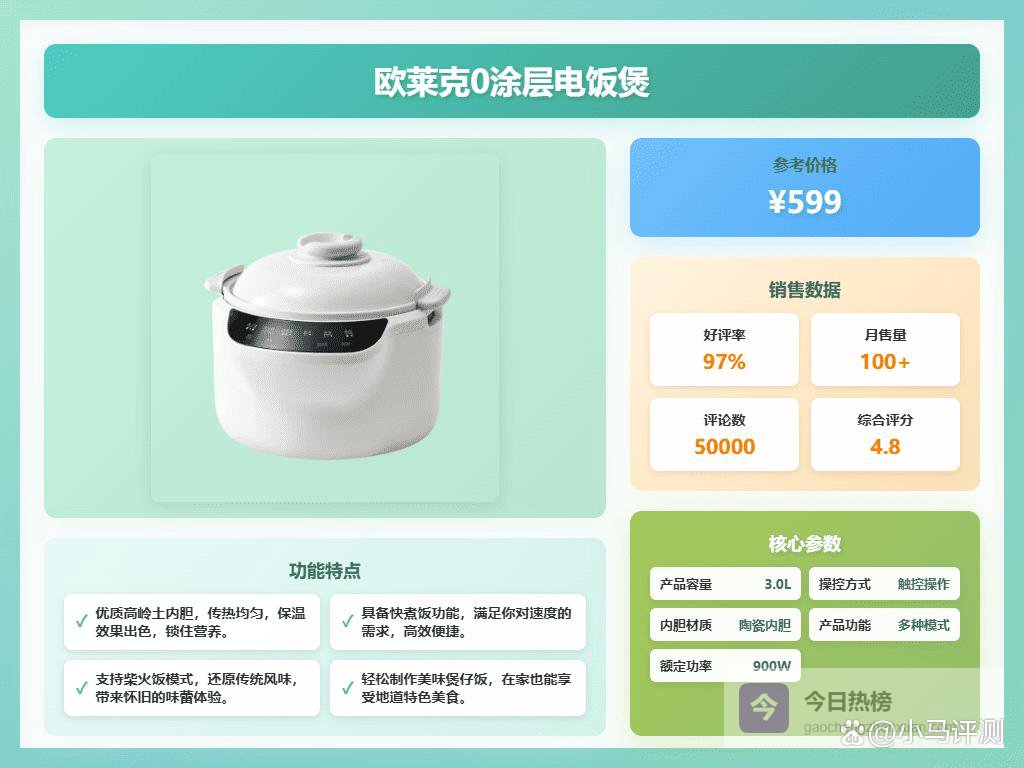 说了这么多,希望能够帮你在选购0涂层电饭锅时少走弯路。记住,安全健康最重要,选择一款用料放心、功能实用的电饭锅,让每一餐都吃得安心又美味!