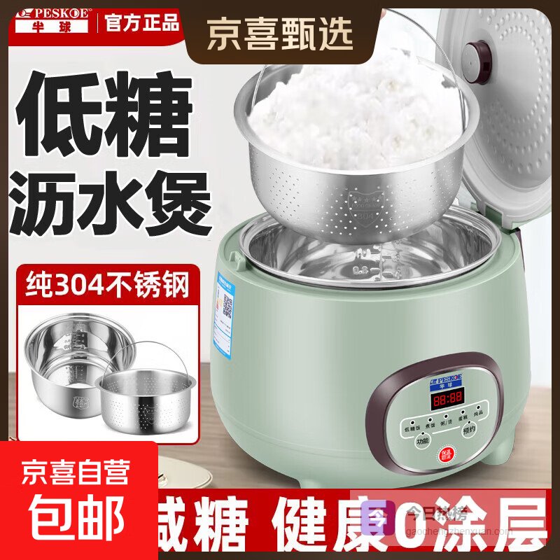 半球(PESKOE)低糖电饭煲0涂层小家用迷你1-2-3人米汤分离沥米饭无涂层不锈钢内胆2升智能糖尿病专用电饭锅 2L 【1-2人】不锈钢无涂层胆+304沥水笼¥