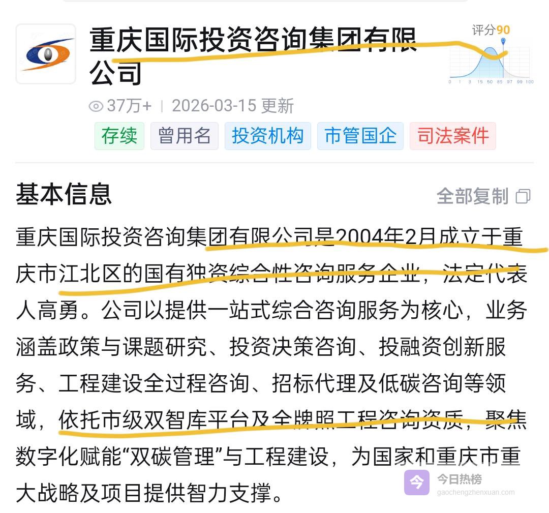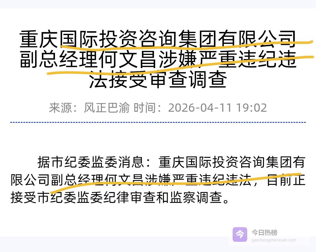 被查!何文昌落马,揭开大型咨询公司腐败的冰山一角2023年,何文昌获评2022重庆经济年度创新人物,无疑是其高光时刻。重庆经济年度创新人物是由重庆市委组织部、宣传部、统战部指导,重庆日报报业集团与两江新区管委会主办的品牌评选活动。每五年评选一次,旨在梳理年度经济脉络,传播重庆优秀人文精神。那时,他作重庆市工程管理有限公司一把手,带领这家企业从一个年产值仅2000万元、业务单一的传统监理公司,转型升级为拥有全资质资信牌照、全产业链协同、全过程专业化服务的综合性咨询平台。然而,短短三年后,轰然倒下。4月11日,山城重庆,平地一声惊雷,何文昌被查。这家大型咨询公司,成立于2004年,是重庆市唯一的“双智库”单位,业务涵盖投资决策咨询、政策研究、招标代理、工程咨询等关键领域,手握重大项目评估、政策建议、资金申请等实权。作为公司的副总,今年今年1月28日,何文昌还参加了梁平区深化政企协同拓展开放合作活动。然而,短短两个半月后,轰然倒下,令人唏嘘。其实,何文昌是工程咨询行业的资深专家,在业内工作超过二十年。其任内,公司年合同金额增长至7亿元,2022年营业收入达2.53亿元,并获评国家高新技术企业。他力推数字化转型,2017年主导成立“智能建造联合研发与应用中心”,运用BIM、数字孪生技术革新工程管理。还牵头成立生态环保事业部,参与策划投资超500亿元的长江大保护项目。近年来,他升任重庆国际投资咨询集团副总经理后,频繁参与各区县政企合作座谈,为地方发展提供重咨方案。何文昌从子公司“一把手”擢升至集团副总,其权力版图从具体的工程管理延伸至更高层级的战略咨询与资源整合。今年1月14日,中央纪委全会明确将“学会协会”列为年度反腐深化整治的重点领域,直指那些依托专业外壳进行利益勾兑的灰色地带。不到三个月,何文昌在智库型国企的关键岗位上被查,释放出以下强烈信号:首先,反腐无禁区,智库也不例外。 智库机构虽以智力服务为主业,但其在项目评审、资金审核、政策建议等方面拥有实质影响力,这些环节同样存在权力寻租的风险。其次,智库腐败危害更具隐蔽性和深远性。 与直接的经济腐败相比,智库腐败可能扭曲政策建议、影响项目评估科学性,进而损害公共利益和决策质量。重咨集团参与众多百亿级重大项目咨询,其廉洁性直接关系到国有资产安全和发展大局。再者,此案是重庆国资系统持续深化反腐的体现。 2026年以来,重庆已有多名国企高管被查处。何文昌案再次警示,无论身处何种专业领域、拥有多少光环,只要触碰纪律红线,必受严惩。