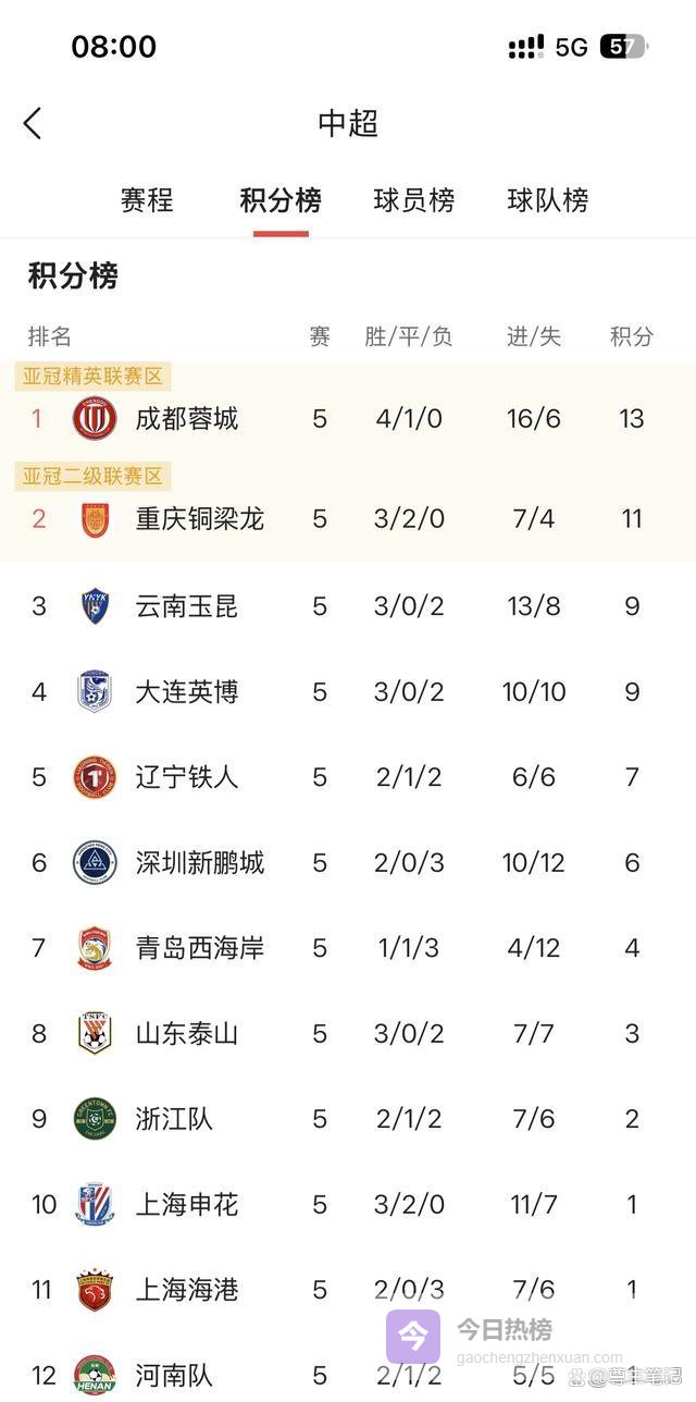 13分领跑,蓉城已经建立起一个肉眼可见的积分优势。身后的几个传统强队,处境都不太乐观。