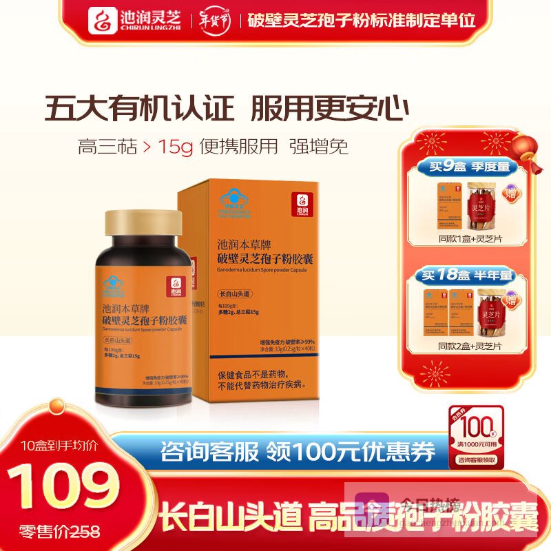 池润【年货节】长白山头道破壁灵芝孢子粉滋补品增强免疫力富含孢子油 第四代破壁灵芝孢子粉胶囊0.25g*40粒/盒¥