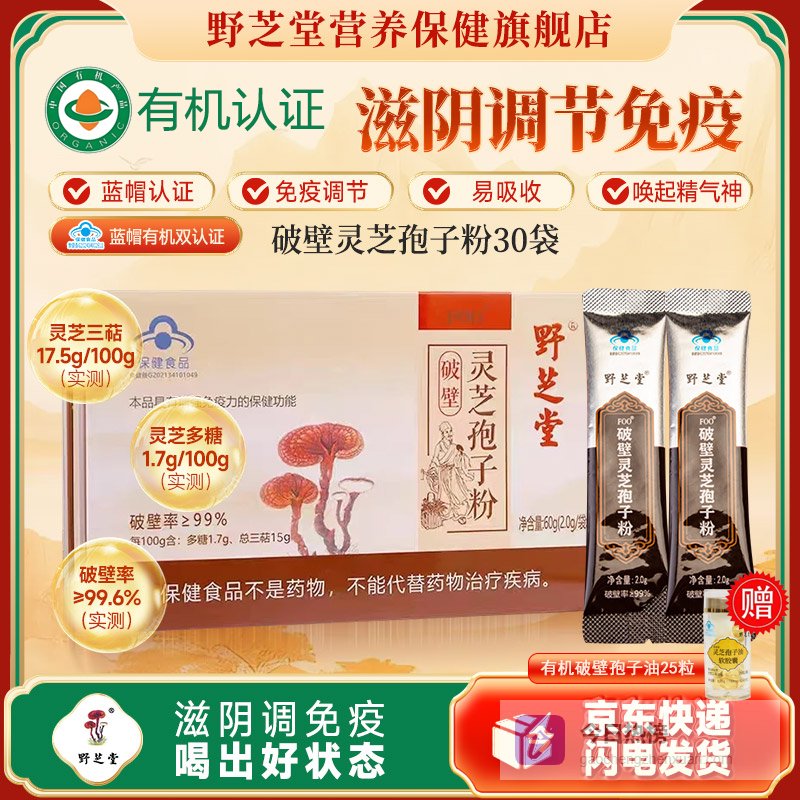 野芝堂厂家直销野芝堂破壁灵芝孢子粉2g/ 袋*30袋/有机蓝帽增强免疫力¥
