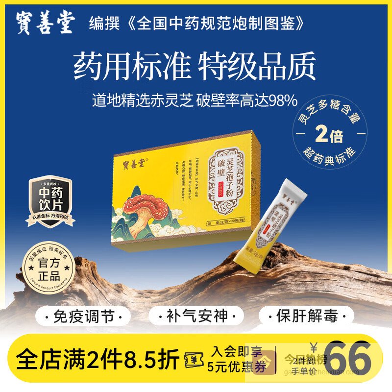 宝善堂破壁灵芝孢子粉 2g*20袋/盒 山东聊城提升免疫术后恢复补气安神健脾益肺无熏硫年货送礼盒装中药饮片¥