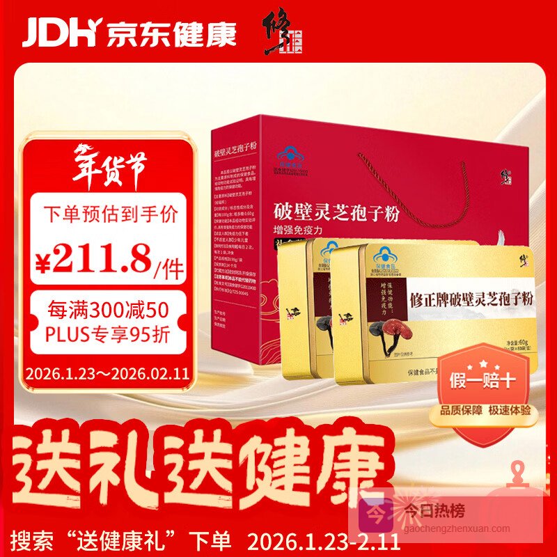 修正破壁灵芝孢子粉礼盒增强免疫力滋补过年送礼年货礼盒60袋/盒*2盒¥