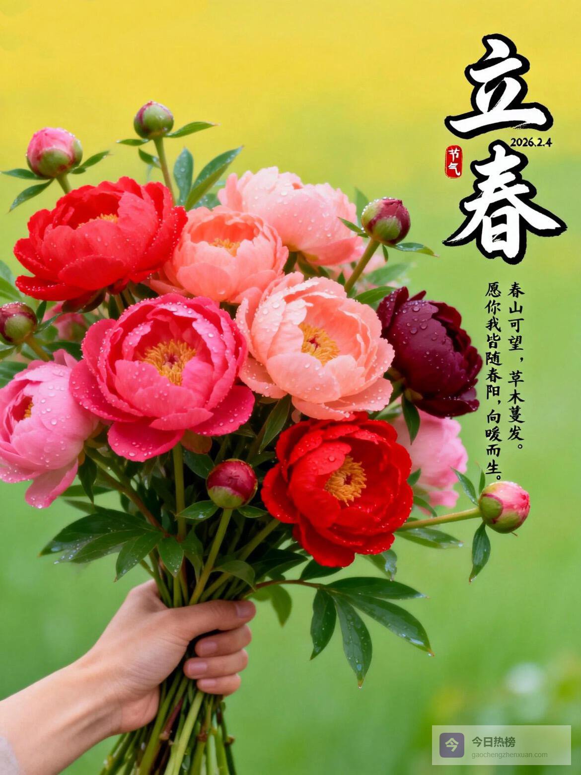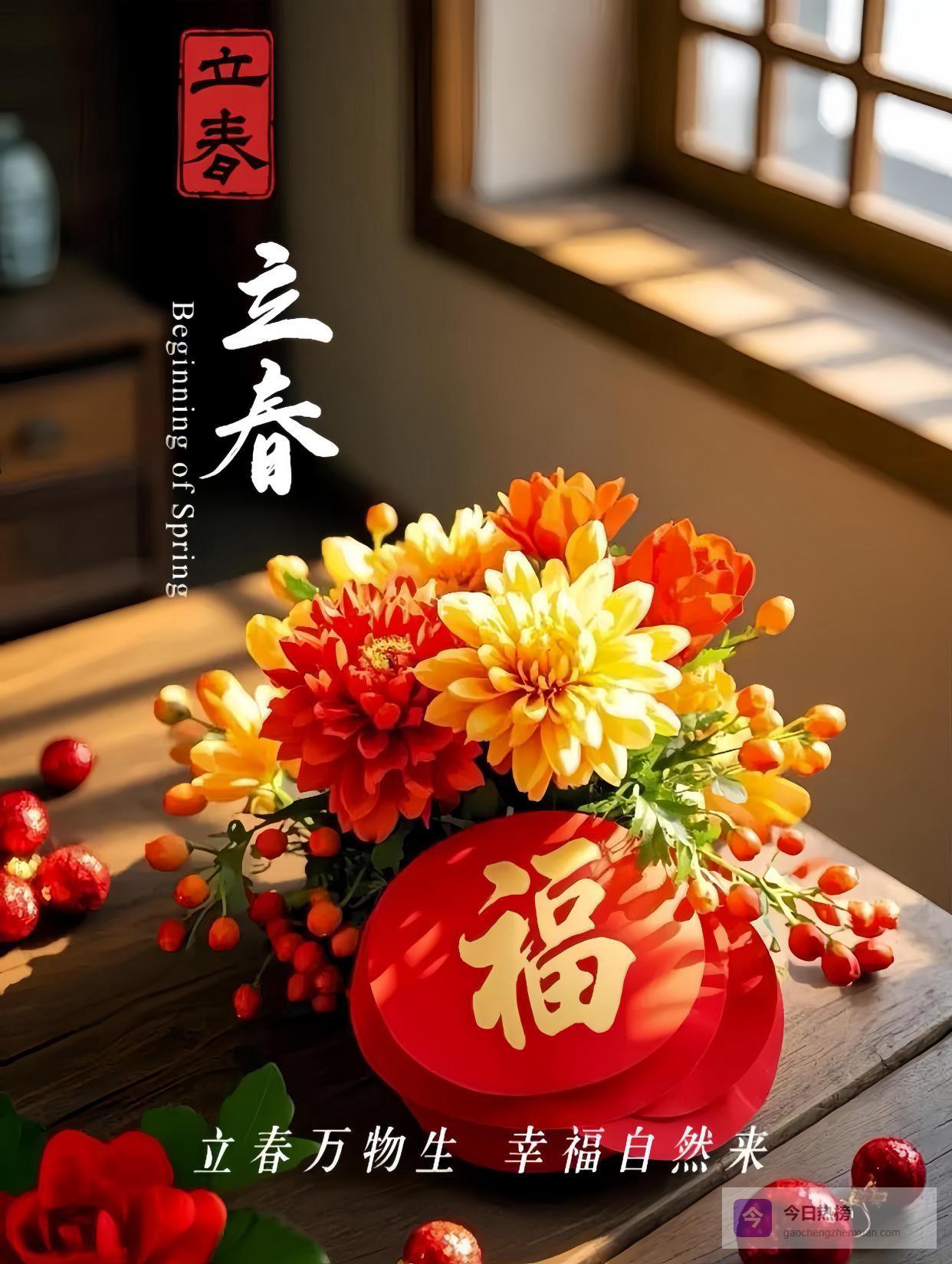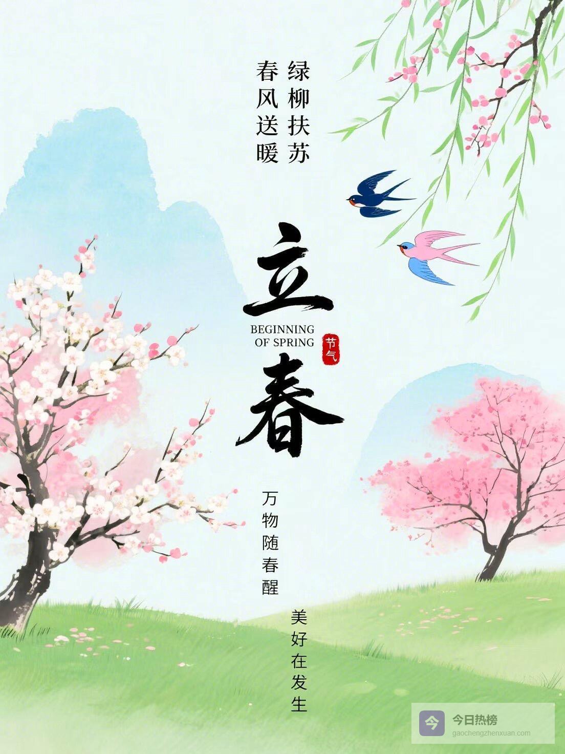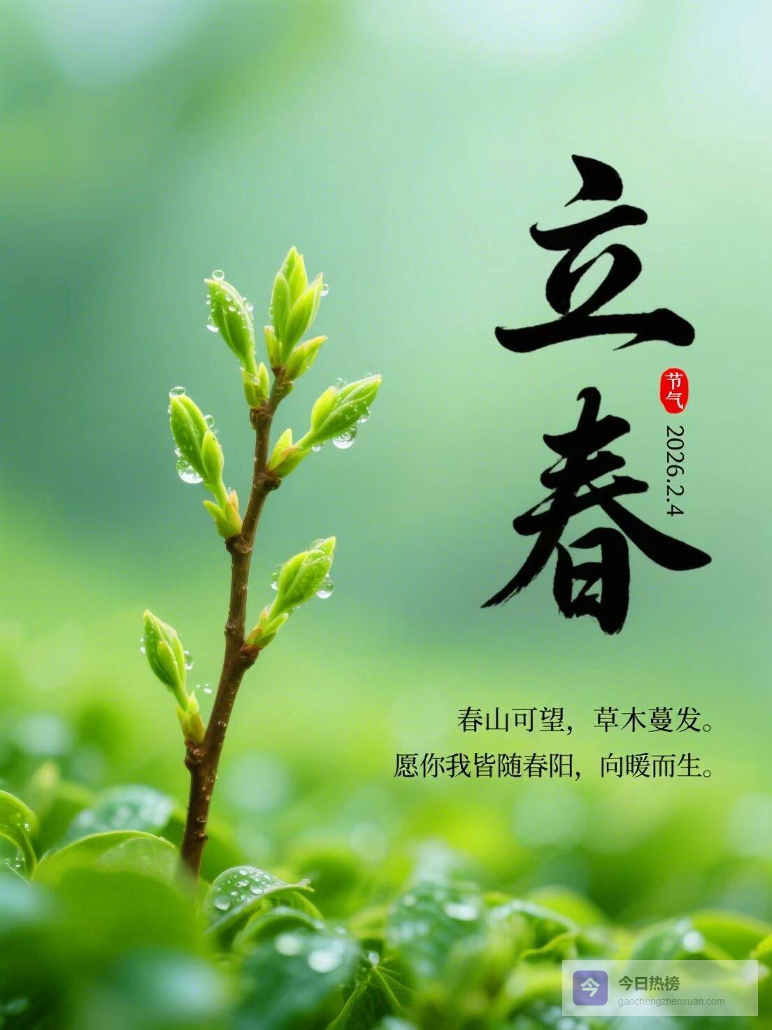 15. 时序立春,万象更新。愿春风吹散心头阴霾,春雨滋润美好前程,在这充满希望的时节,平安顺遂,喜乐安康,福气常伴!