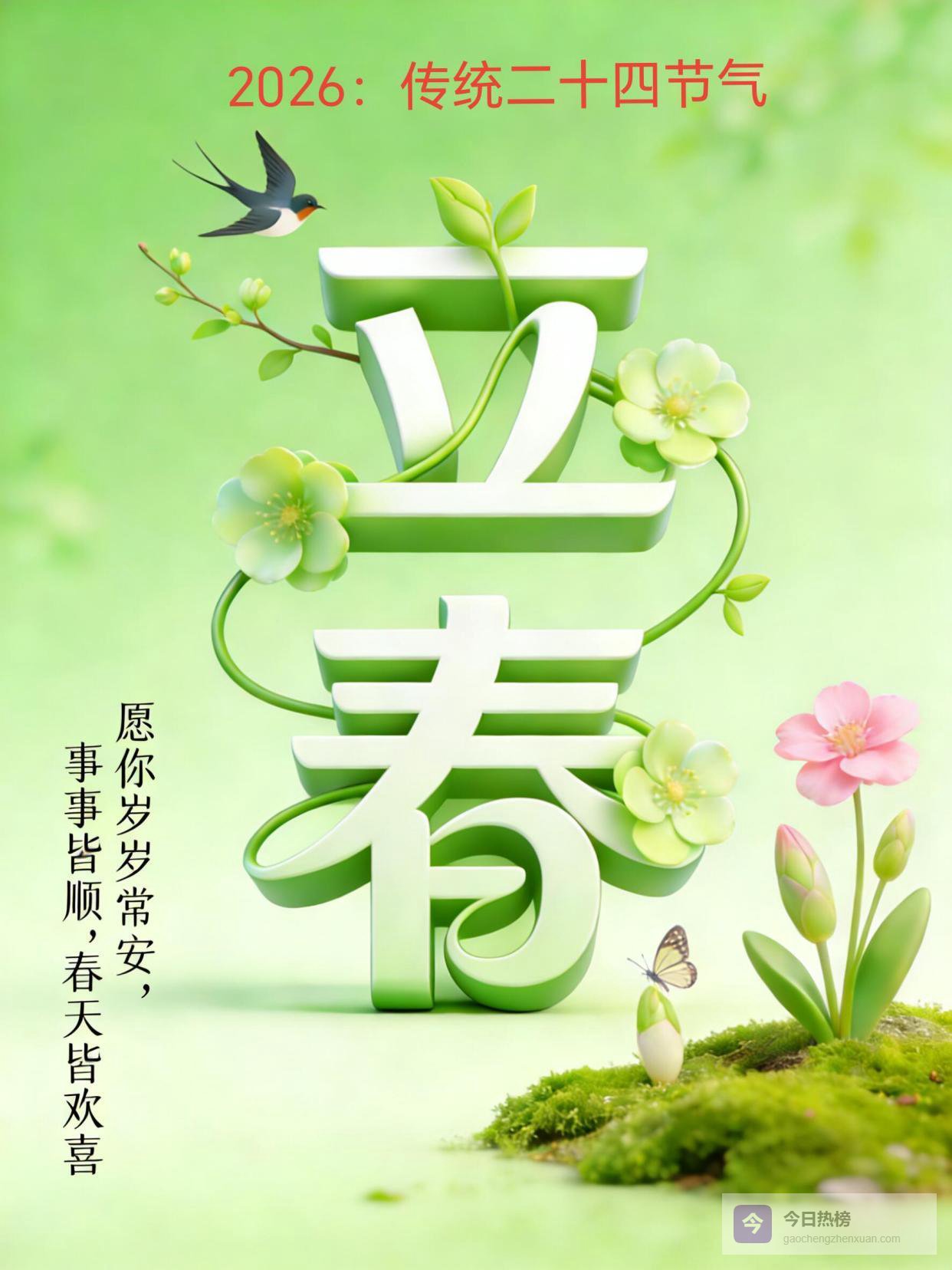 10. 雪融春暖,绿意初绽。立春带着生生不息的力量,唤醒大地,也唤醒希望。愿你乘风破浪,光芒万丈,所遇皆温柔,所见皆晴朗。