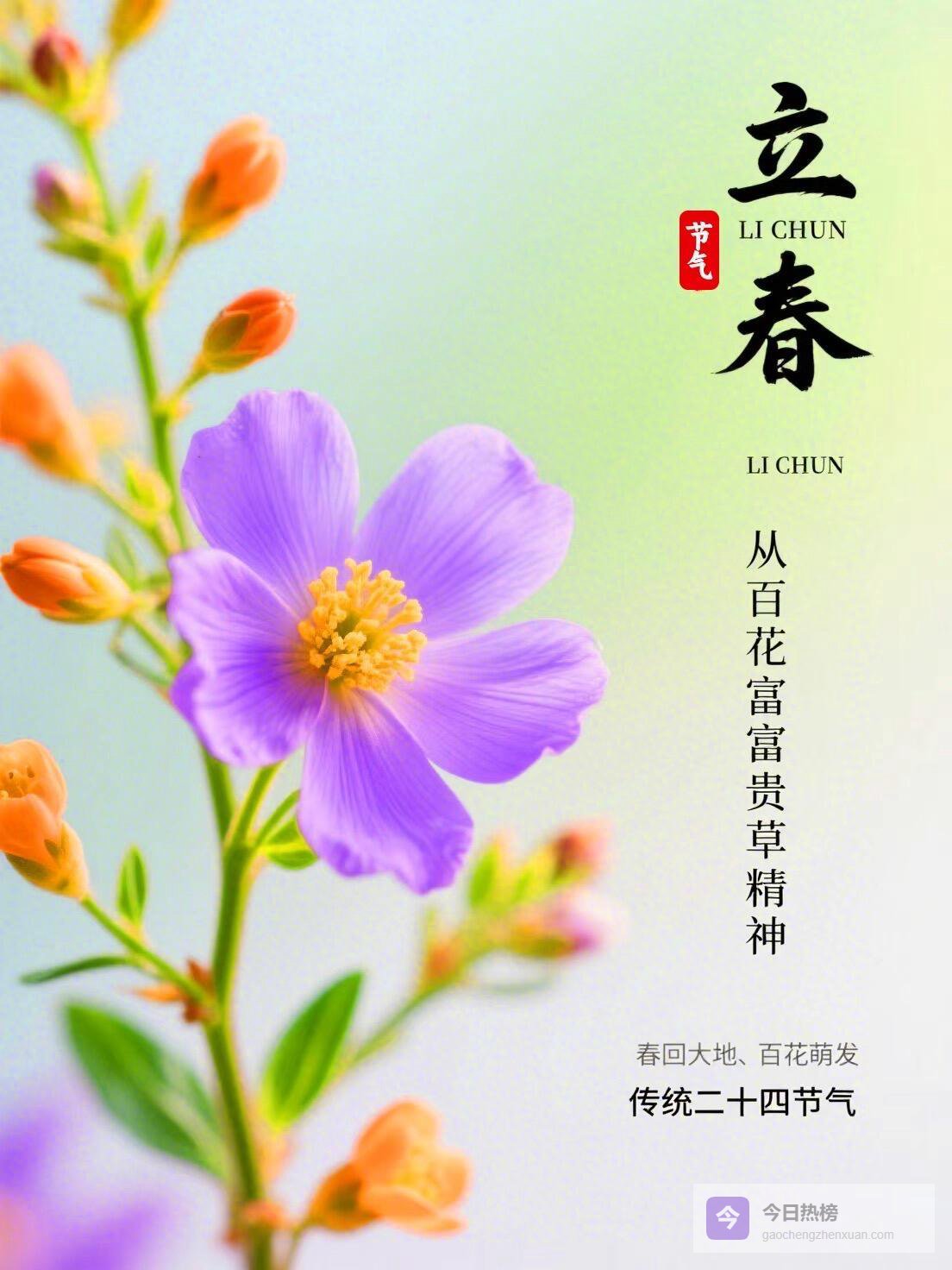 6. 冬尽今宵促,年开明日长。立春携着新生与希望而来,不慌不忙,静静生长。愿你心怀温柔,稳步前行,收获一路芬芳!