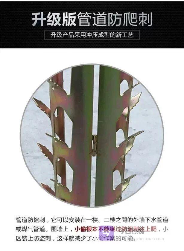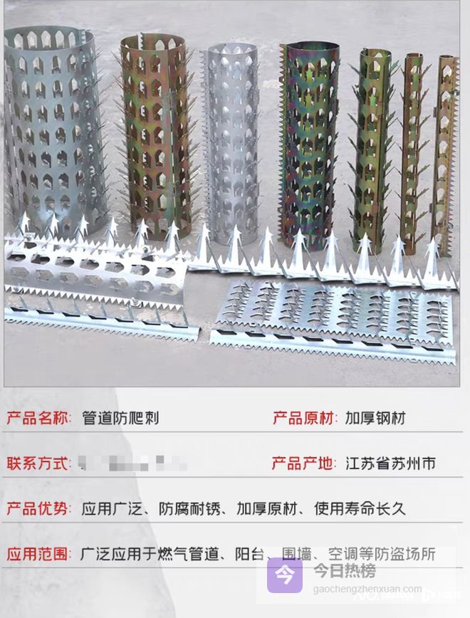 奥一新闻记者在网购平台查询发现,业主们所反映的“金属倒刺”实为“管道防爬刺”,此类产品多应用于燃气管道、阳台、围墙等防盗场所。