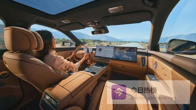 座舱内部采用环抱式弧面布局,以豪华舒适为核心,打造沉浸式奢享空间。