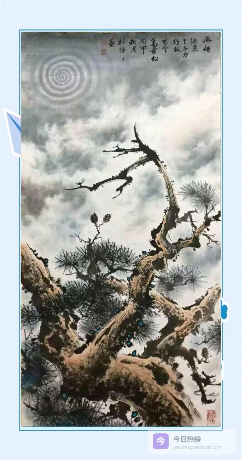 画家把引力、磁场、共振波一并揉进墨色,让松针的每一根针尖都拖着宇宙的尾巴。于是,眼前的松不再是树,而是一根通往遥远星系的信号天线——它替我们接收无声的指令:挺拔,再挺拔,哪怕风要折弯脊梁,也要把根扎进看不见的岩浆。