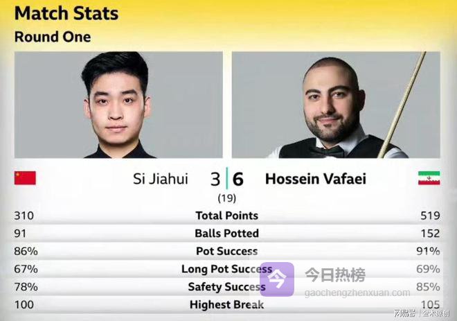 中国球员斯佳辉也是如此,在第一阶段首局100分破百开局,并且在3-1领先情况下,连丢五局,如此情况下,斯佳辉很难翻盘!