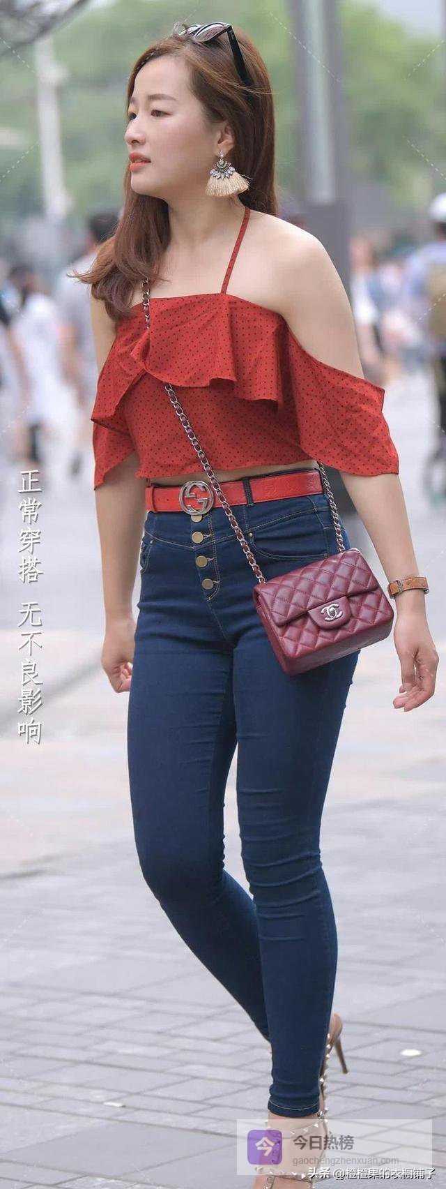 暗红色的波点遇上牛仔裤,这个组合的力量远超想象。
