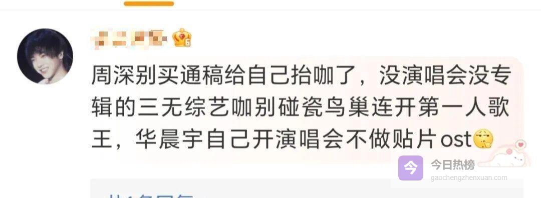 就是这样,双方粉丝火药味渐浓,原本华语乐坛的“神仙打架”变成了粉丝之间的“修罗场”。华晨宇的粉丝也不甘寂寞,站出来质疑周深歌曲的播放量和收藏数量。