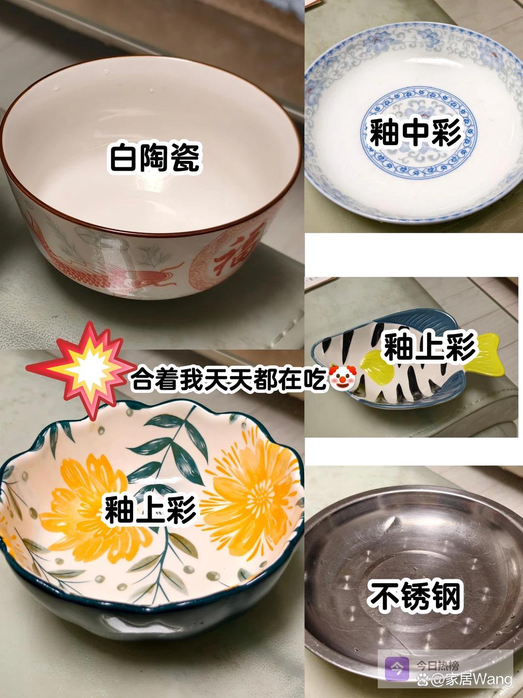 所以家里有这样的陶瓷碗赶紧扔掉,在购买陶瓷,餐具的时候也要注意,不要买到这种釉上彩的。