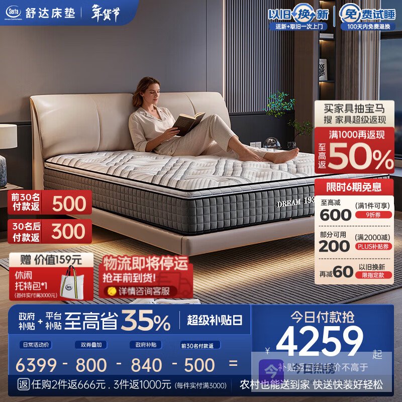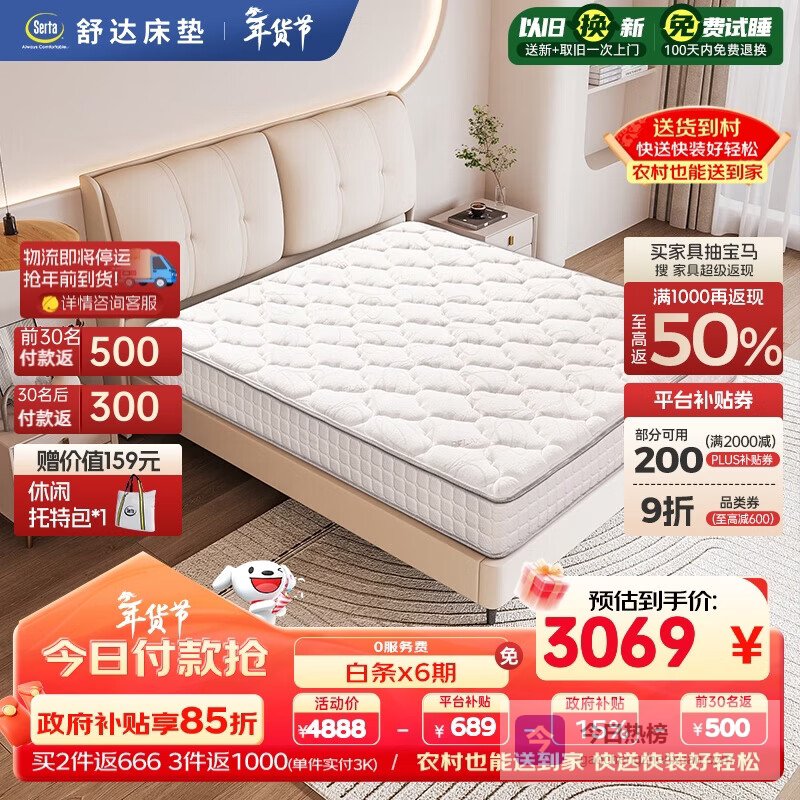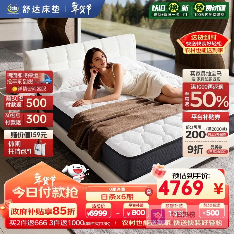 【京东自营】舒达致眠乳胶核心技术弹簧超体线下同款床垫1.8*2米适中睡感¥