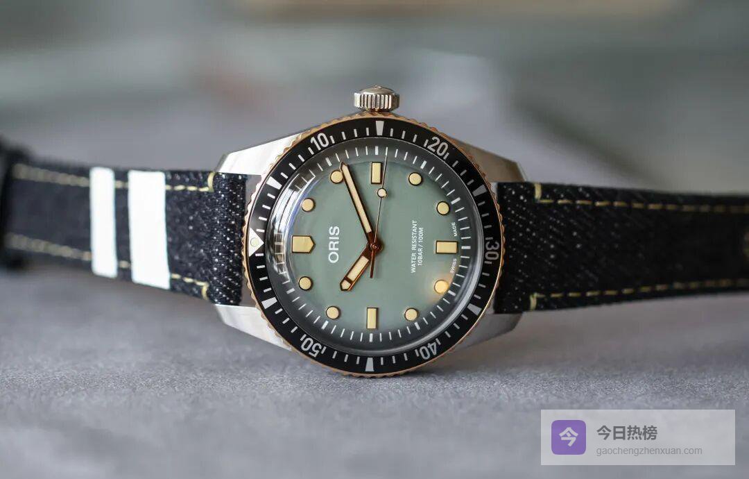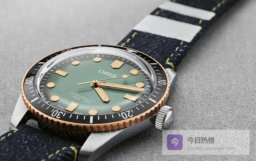 当“复刻”成为潮流,ORIS 把 Divers 65 与日本丹宁品牌桃太郎联名,两条白色条纹直接把日系街头感拉满。40 mm 青铜圈搭配翡翠绿渐变盘,第一次出现在 Divers 65 上,蓝宝石玻璃压阵,坚固与颜值双赢。