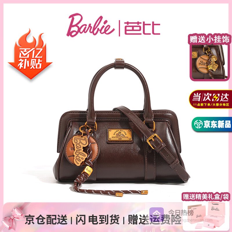 芭比(Barbie)手提包包女包2026年新款复古保龄球轻奢单肩斜挎包闺蜜礼物情人节¥