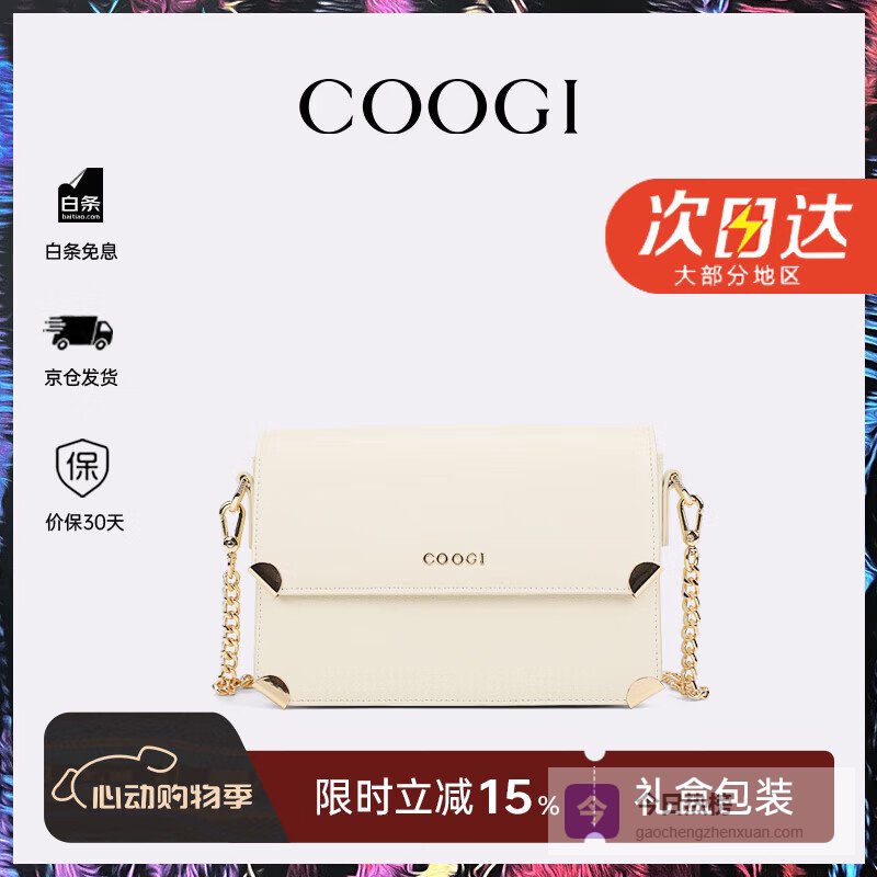 四、COOGI这款COOGI女士单肩斜挎包采用翻盖设计,不仅时尚个性,还能提供双重防护,确保你的物品安全。包角位置配备金属保护角,有效减少磨损,延长使用寿命,整体造型简约又有质感,适合日常搭配。