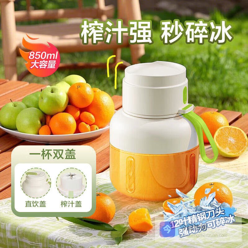 这款榨汁机搭载了高效榨汁系统,配备的精钢十叶刀头可以轻松处理冰块和果肉,使得制作过程中不再有渣滓,口感顺滑。灵活的双盖设计,使用户可以根据需求选择直饮或榨汁,充分满足不同场景下的使用需求。强劲的电池续航能力,充电后可持续使用约3小时,免去续航焦虑,让生活更加便捷。
