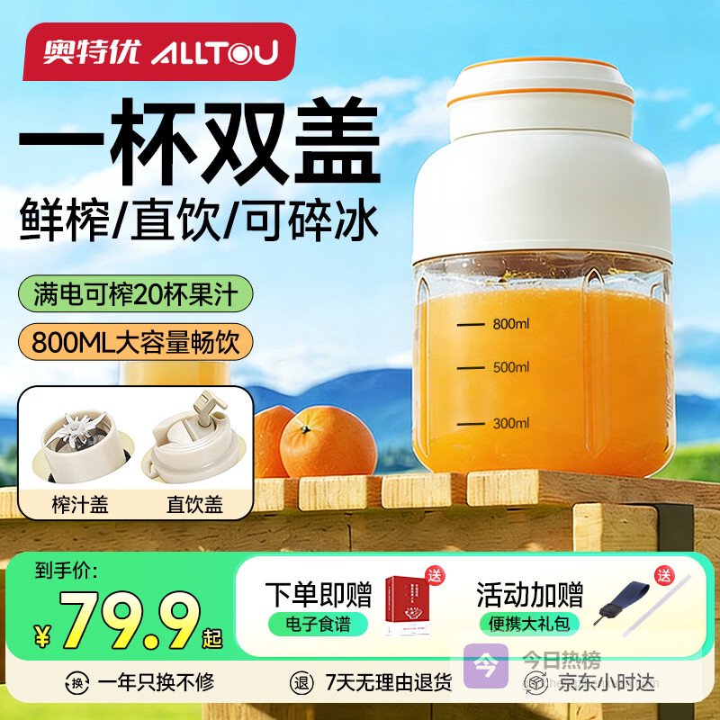 【品牌直营】奥特优榨汁机果蔬原汁机小型便携式榨汁杯吨吨桶鲜榨果汁机全自动家用料理机多功能冰沙奶昔机电¥