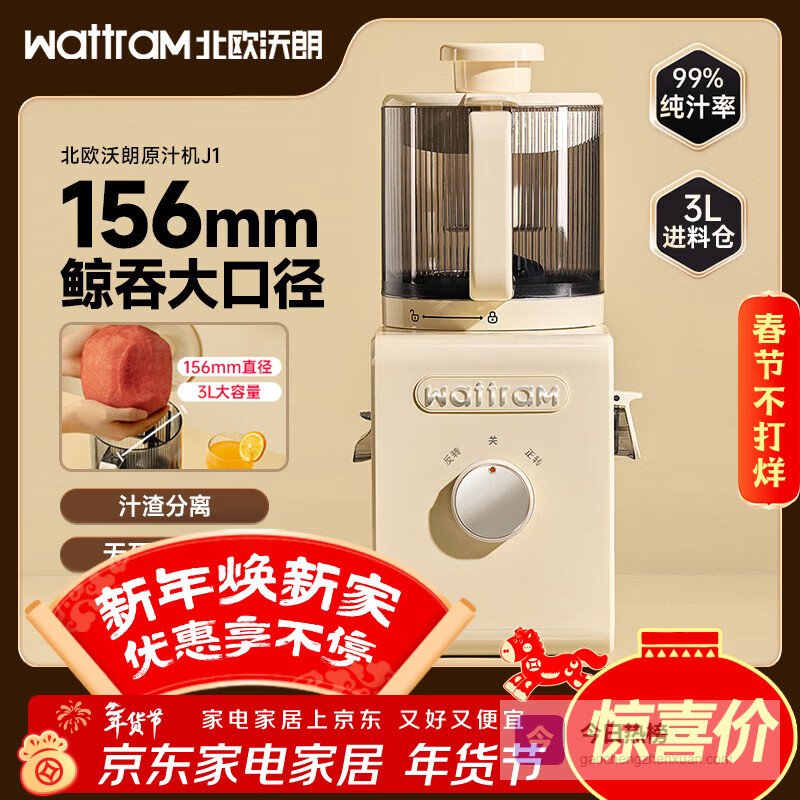 【京东自营】北欧沃朗原汁机家用156mm超大口径电动果蔬机渣汁分离鲜榨炸果汁机水果蔬菜免切榨汁机J1¥