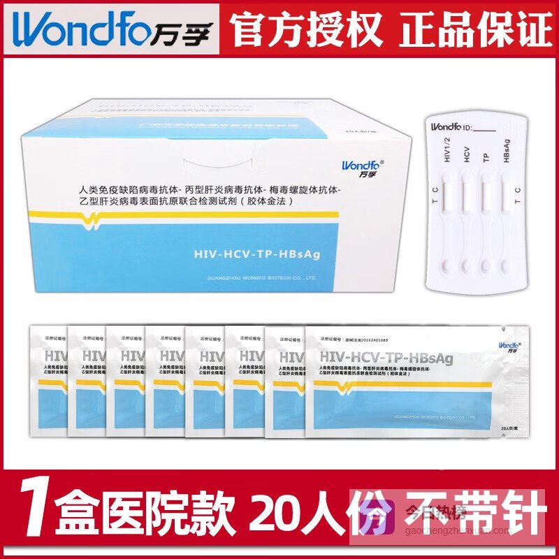 万孚艾滋病梅毒检测试纸hiv性病传染病乙肝丙肝TP联合检测板四联卡 1盒 四联卡(20人份/盒)不带针¥