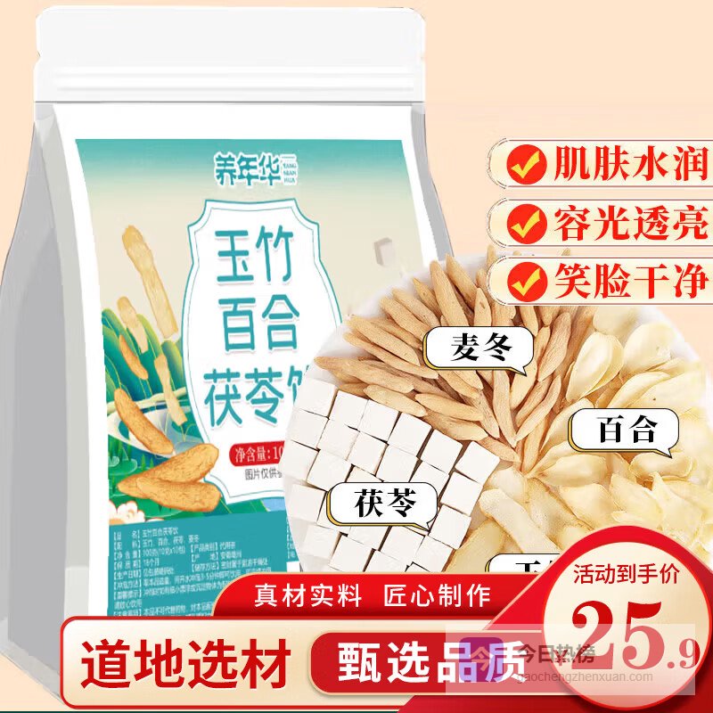 养年华玉竹百合茯苓饮融合多种药食同源食材,科学配比制成方便冲泡的养生茶饮。玉竹滋阴润肺,百合清心安神,茯苓健脾利湿,酸枣仁助眠,雪梨生津润燥。这款茶饮特别适合长期熬夜、压力大、容易上火的人群,温水冲泡即可饮用,省去传统煎煮的麻烦。