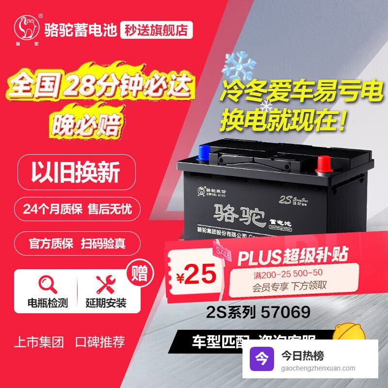 骆驼(CAMEL)汽车电瓶蓄电池57069(2S)12V 凯迪拉克赛威奥迪A3上门安装¥