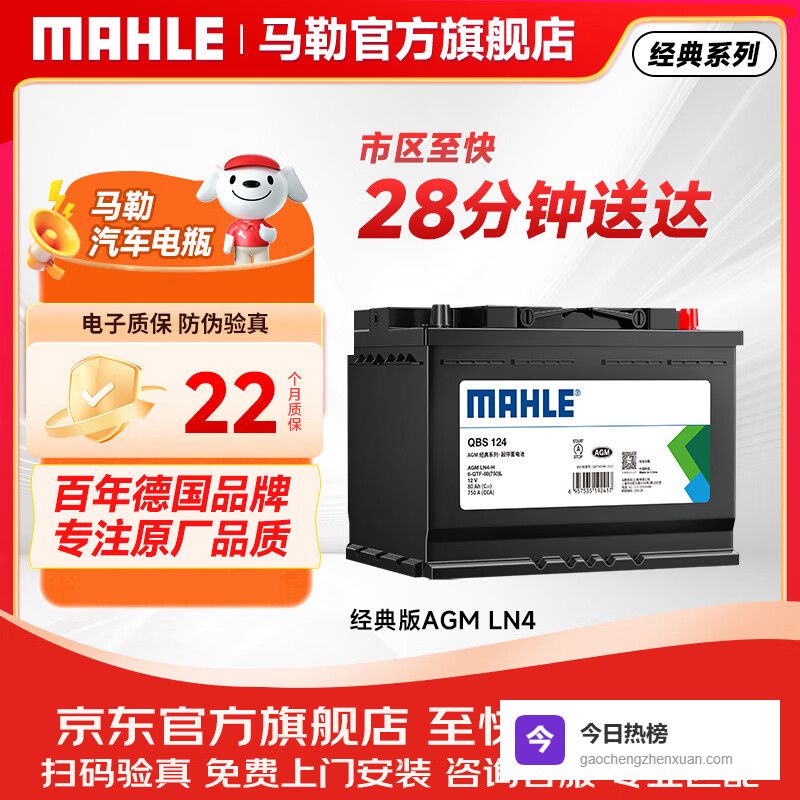 马勒(MAHLE)汽车电瓶蓄电池起停AGM LN4适配沃尔沃XC60/XC90奔驰C级/E级80Ah¥