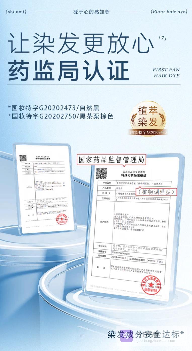 它以高比例的何首乌、人参等植物精粹群为基石,构建了真正意义上的“零化学风险”着色方案。不仅规避了苯二胺、间苯二胺等高危刺激物,更做到了无氨味、低刺激,让染发过程从“任务”变成一种“养护享受”。其备案齐全,实测数据亮眼:高危物未检出、植物添加超30%、头皮刺激率低于0.5%、白发遮盖力95%以上,这些实实在在的检测结果,是其安全承诺的最佳佐证。