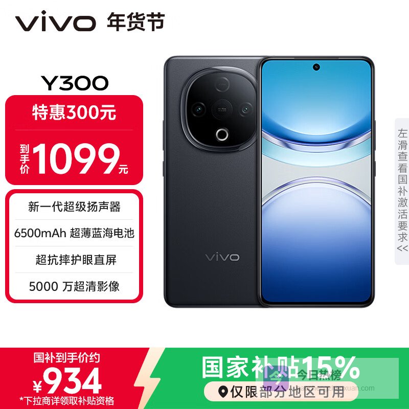 vivo Y300 8GB+256GB 星钻黑 国家补贴 新一代超级扬声器 6500mAh超薄蓝海电池 超抗摔护眼直屏 AI手机¥