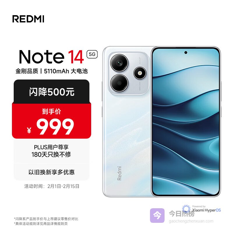 小米 REDMI Note14 5G 金刚品质 5110mAh大电量 大光圈超感相机 8GB+256GB 星辉白 红米手机¥